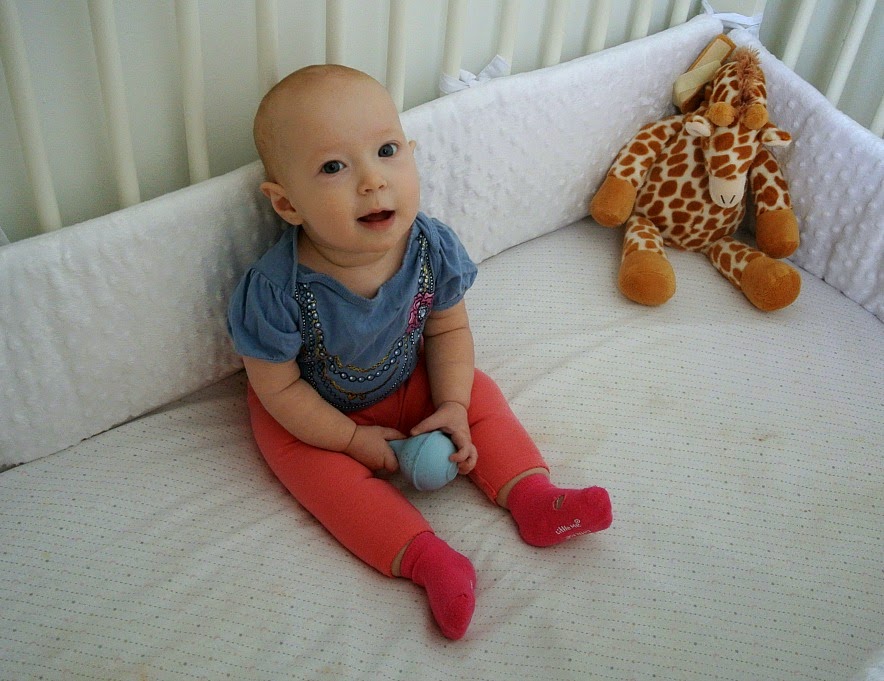 I feel like little miss packed on the weight this past month! I'm going to guess 18 pounds and 27 inches long.